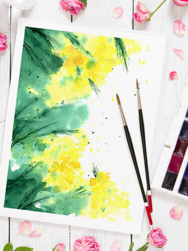 Mimosas flous à l'aquarelle